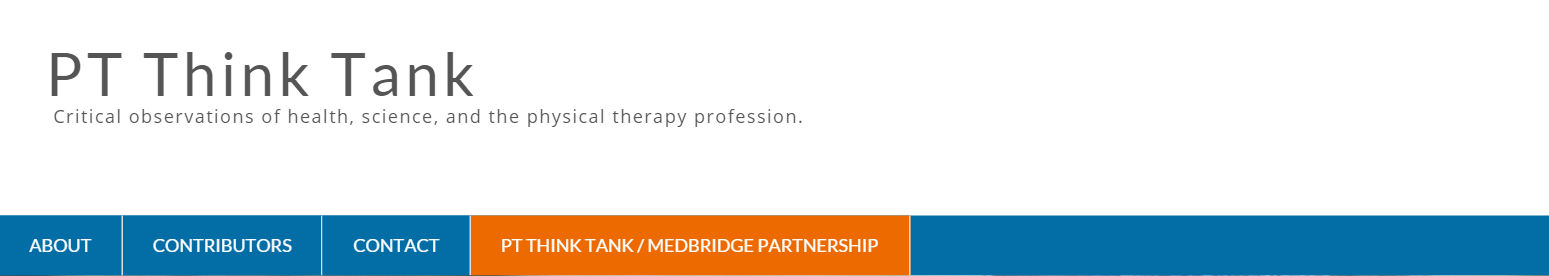 Founded by Eric Robertson PT, DPT, OCS, FAAOMPT in 2006 ptthinktank has grown into one of the more influential online resources in the field. The contributors are diverse and the content they cover encompasses the full spectrum of physical therapy. In addition to their many excellent contributions, they are also the brains behind the weekly #DPTStudent tweet chats, which they archive on their site. From both student to seasoned clinician this is a definitely a blog to follow.